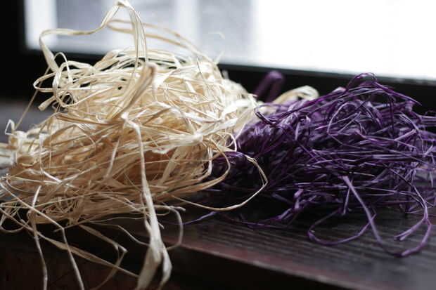 Para este proyecto usé púrpura y "natural' rafia de colores para que veáis como va juntos un poco más fácil.