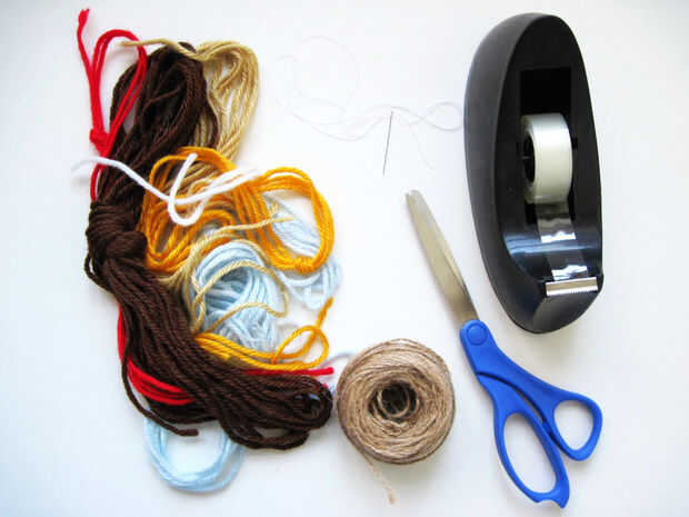 algunas piezas impares de diferentes colores de hilo, de unos 2 m en total (he utilizado leer, amarillo y pálido azul)