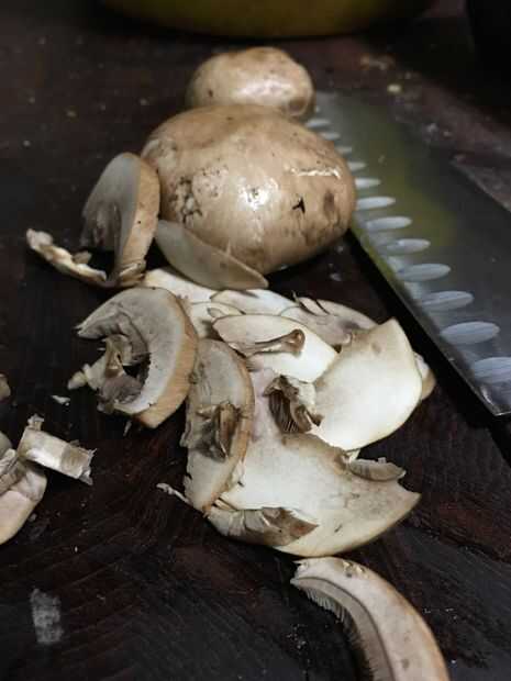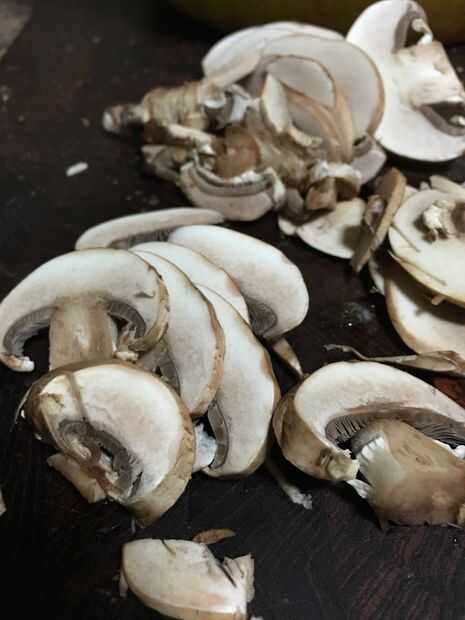 Rebana finamente los champiñones. Cortar en cuadritos la cebolla y los tomates...