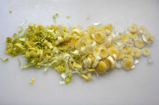 -Limpiar el puerro y cortar en tiras de Juliana