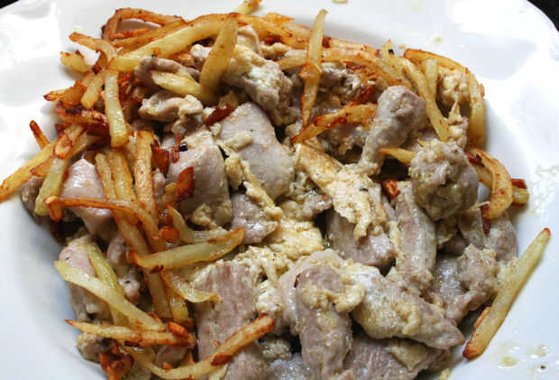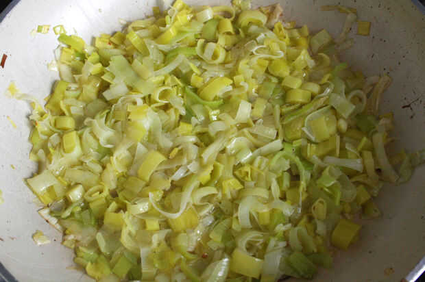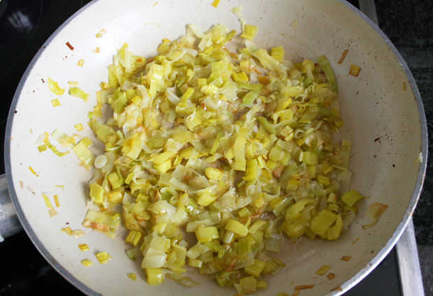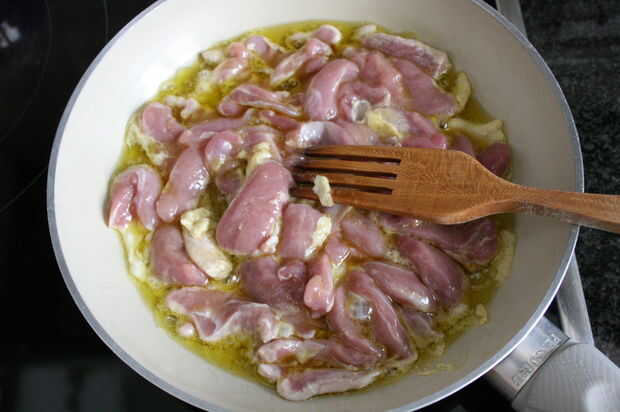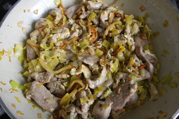 -Calentar aceite en una sartén, vierta la mezcla de cordero en ella junto con los ajos y freír lo