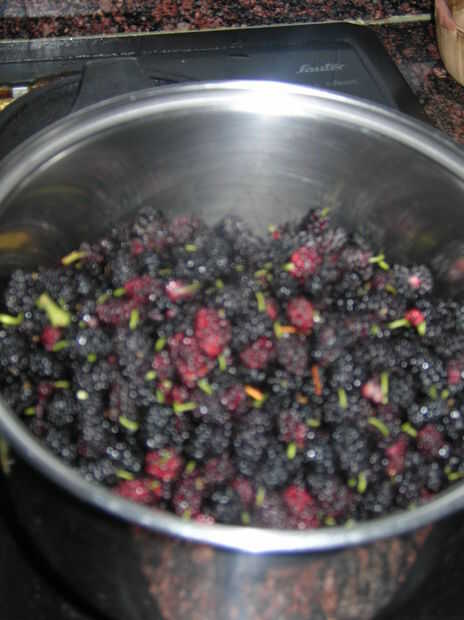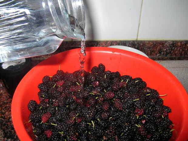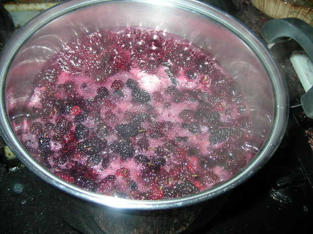 Este paso es extraer el jugo de las bayas; por qué después de enjuagar bien si cualquier, se pesó y añadir 20 cl. de agua por kilo de fruta. A continuación hervir.