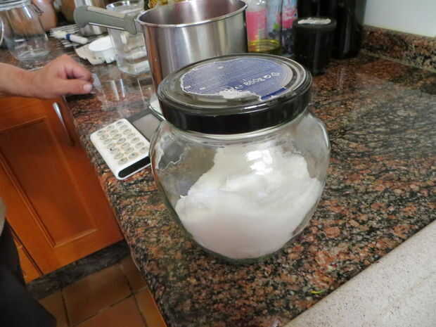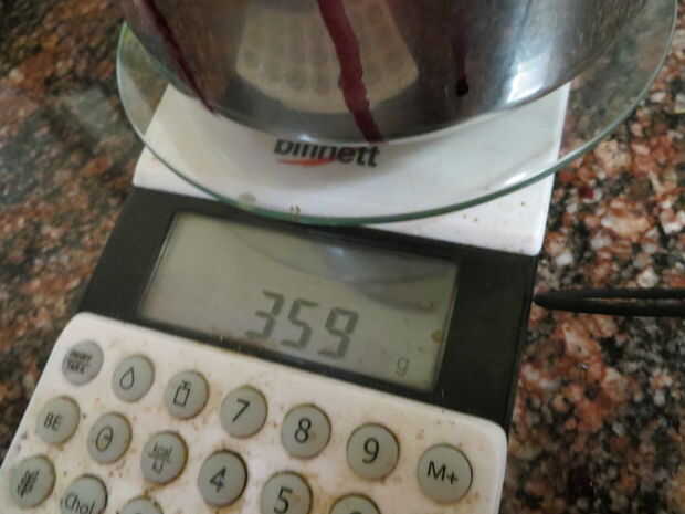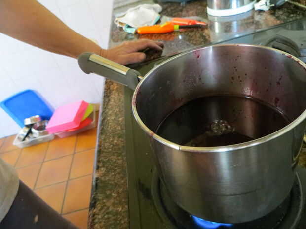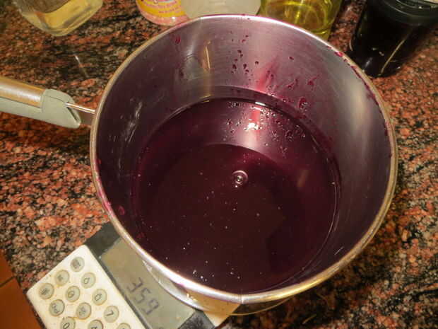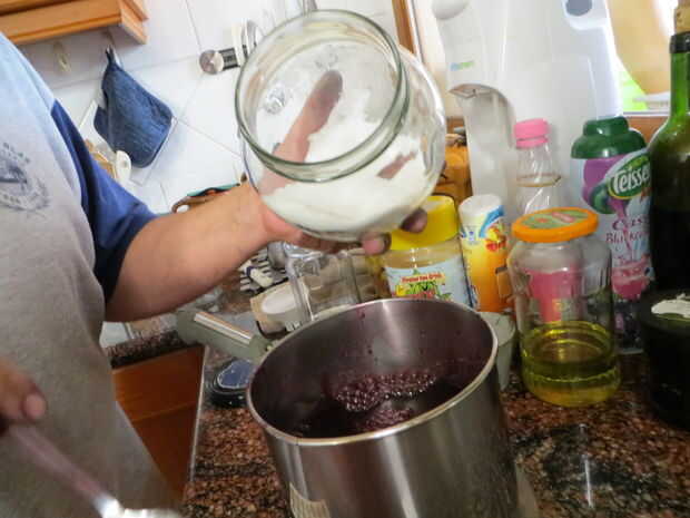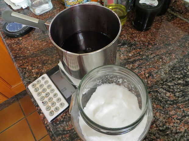 ahora pesar el jugo y añadir el azúcar en 700 gr. de azúcar por litro de jugo extraído