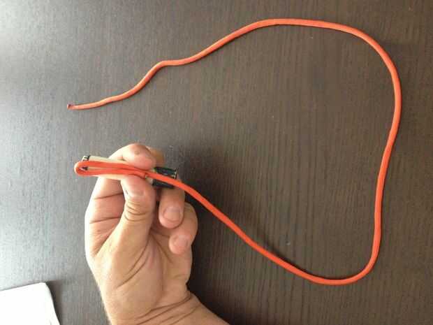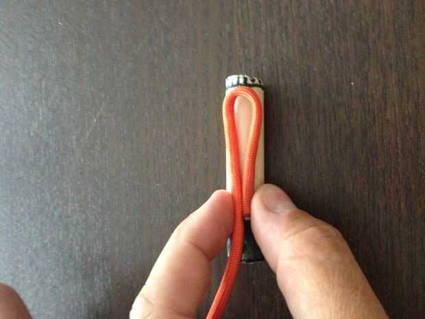 En primer lugar, hacer un lazo con el paracord un poco menor que la longitud del labio bálsamo. Para los efectos del presente ' ible, etiquetamos los dos extremos de la cuerda el "extremo corto" y el "extremo largo"