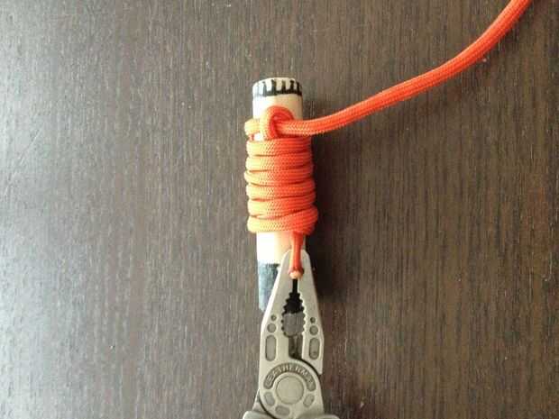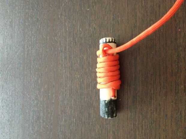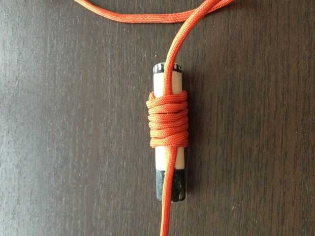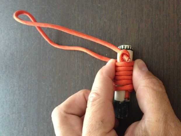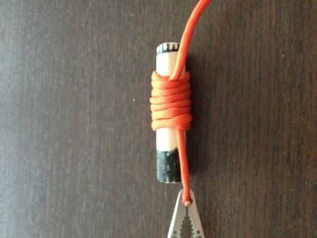 Slick el extremo largo del cable en el lazo y tire de ella a través de todo el camino. Ahora coge el extremo corto y tire. puede ser difícil, pueden ayudar pinzas. Lo que sucederá es que el lazo en el extremo opuesto del bálsamo de labio, junto con el extremo largo de la cuerda, se va desplazando a través de la envoltura. Esto endurecerá las envolturas.