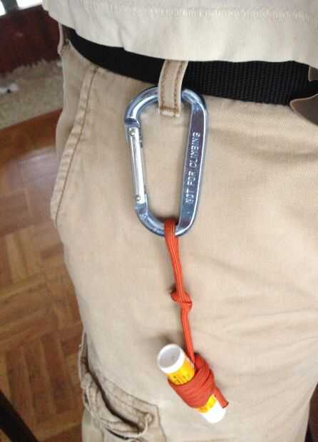 Conectar el mosquetón, luego clip en un bucle de cinturón y en usted!!!!!! El látigo sólo conseguirá más apretado como usarlo (get que lo mojado, etc). Yo he sido rafting, wake-boarding, snorkel, y muchas otras cosas deportivas y todavía cuelga fuerte. Comentarios forman gama celosos observadores de "es inteligente", a "lo que un geek" (con un rollo de ojo). Para ser justos, el último era de mi hermana en ley... ella no aprecia soluciones inteligentes a problemas comunes.