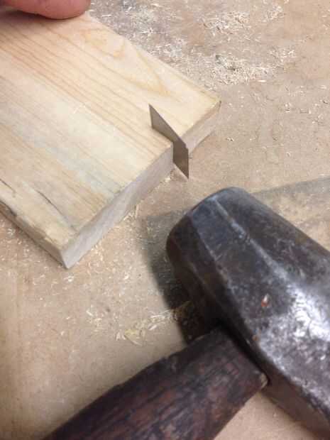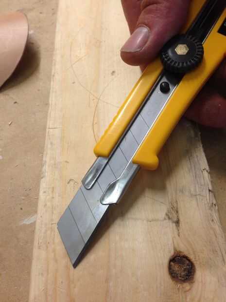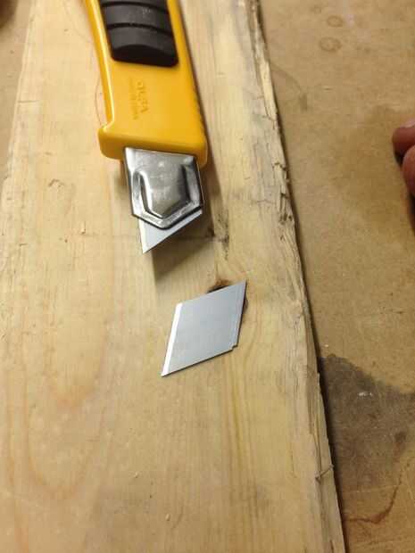 Tomar el cuchillo, o si usted está usando un cuchillo del exacto, rotura de una sección de la hoja y martillo en la madera final, en un extremo de la placa, dejando al menos un 1/2' de la hoja expuesta sobre la madera (filo en la placa!)