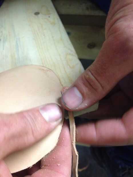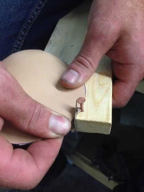 Coloque el círculo de cuero delante de usted en el tablero, justo delante de la hoja y con la uña.