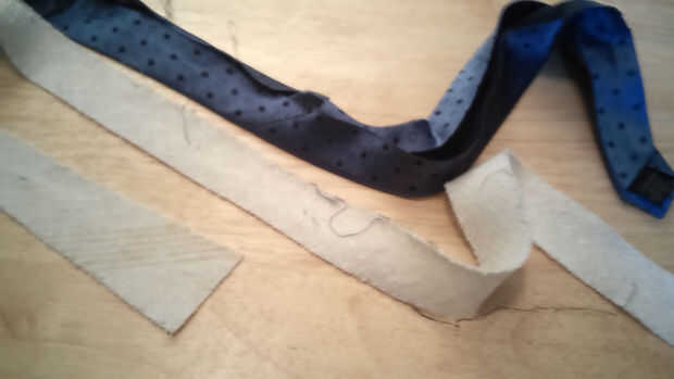 Comencé cortando al hilo del costura hacia fuera que conecta los dos extremos de la corbata.