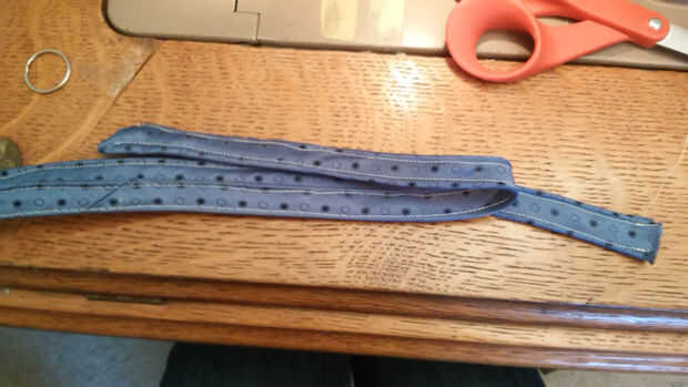 Después de sacar la entretela me dobla a la tela a lo largo y cose los extremos juntos.