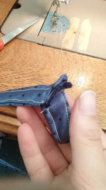 Por último cosí los dos extremos de la cuerda de lazo para crear el producto completo.