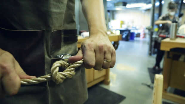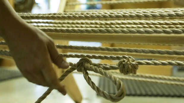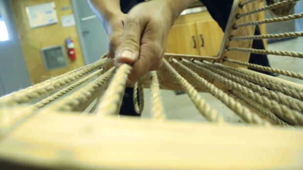 Como mencioné, la cuerda crea la tensión opuesta que mantiene unida a la silla. Para obtener la cuerda apretada sin usar un torniquete o algún otro tipo de hardware, utilice el enganche de un camionero.