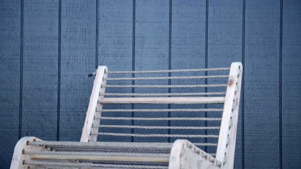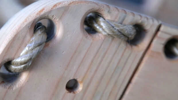 Es una postura cómoda para una silla de salón, y hacen de las cuerdas para una superficie que se sienta agradable. La espiga en la parte posterior de asiento excava en la espalda aunque - definitivamente considerar colocar más abajo o más atrás en su versión.