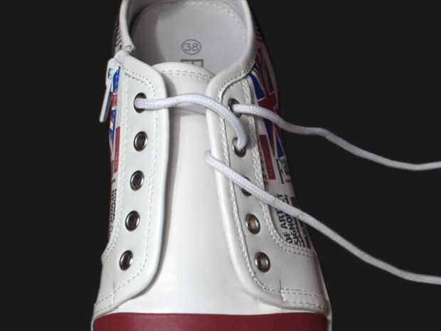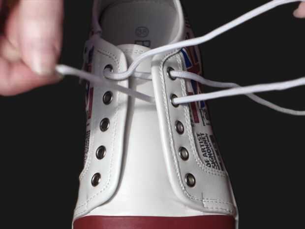 Paso 2: Pase el extremo de la derecha (como se ve en el pie de arriba) del cordón a través de la siguiente frente ojete.
