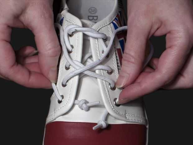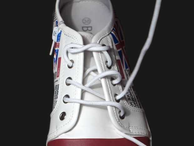 Paso 4: Cordón hasta el final con cualquier estilo preferible (e.g. cruzado como se muestra) y hacer pequeños nudos en los extremos de los cordones de los zapatos.