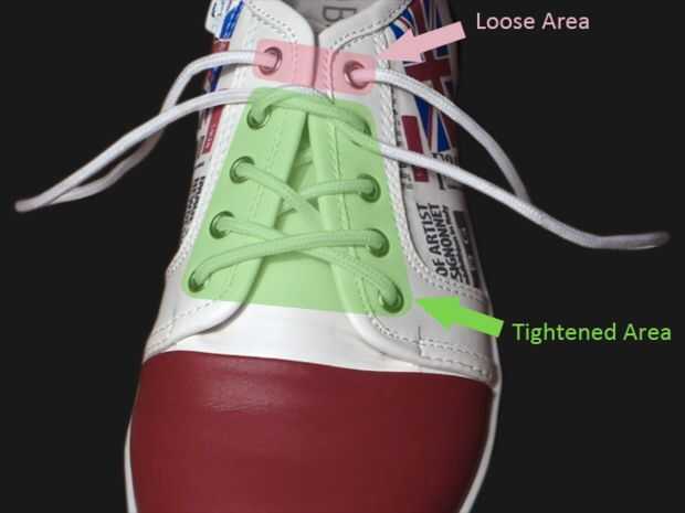 Paso 5: Apriete y coloque el cordón de manera que el medio nudo se encuentra en el segundo par (no de arriba!) de los ojales. Ahora el ucraniano del cordón está listo.