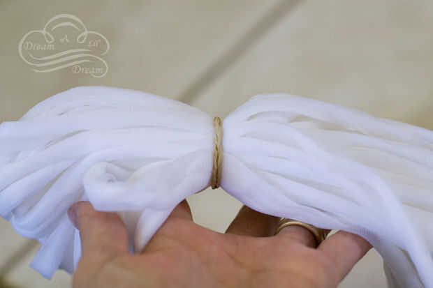 Recoger su material con una pequeña banda de goma, como en la imagen de abajo, es útil cuando sus suspensiones del cordón para que el encaje en exceso no consigue en su camino o se enrede.