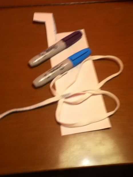 usted necesitará 2 diferentes colores de cordones. Papel de desecho. Cordones de los zapatos blancos. Y el fregadero con agua
