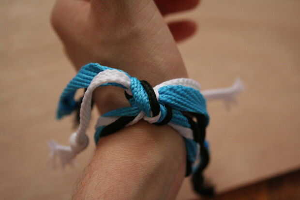 Acabar con los tres granos más en el otro extremo de los cordones y atar alrededor de su muñeca!