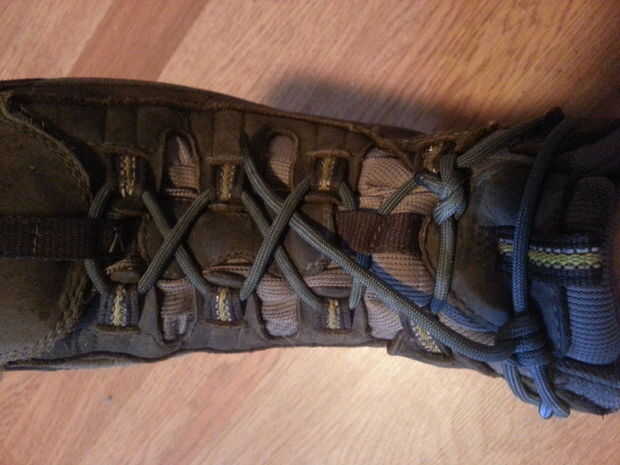 tenía un cordón que se destroza bastante bien y no quería correr fuera y comprar un nuevo par. Concedido son generalmente bastante baratos, pero tengo unos cientos de pies de paracord 550 en casa y pensé que haría que algunos rápidamente. Quería tamb