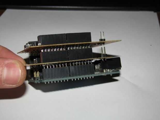 Caben en cualquier Arduino (incluyendo Mega) y permite una pantalla adicional para agregar en la parte superior (escudo se conectará a la base Arduino) otros pernos será libres.