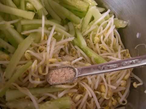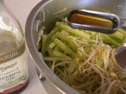 Coreano fácil germinado de frijol mungo y ensalada de pepino (vegana y cruda) (9 / 12 paso)