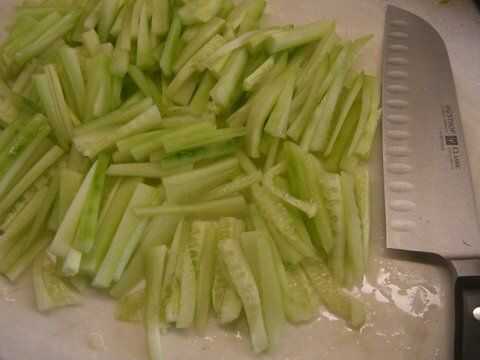Cortar el pepino en trozos de cuerpos.