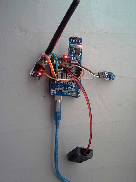 Asiente la protoshield en las cabeceras de la mujer en el Arduino Uno *. Conecte los sensores y el módulo RTC (reloj en tiempo real) a la protoshield como en la imagen.