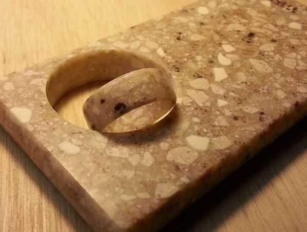 El proceso de que uso es muy sencillo. El anillo de Corian blanco en primer lugar se corta con un serrucho ordinario (que cuestan cerca de $12 en las ferreterías locales). Cortan un bloque de pegamento para sostener el Corian también con el mismo tamaño Sierra y luego pegarlos juntos. Llano viejo pegamento funciona bien y configura dentro de unos cinco minutos.
