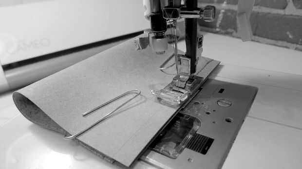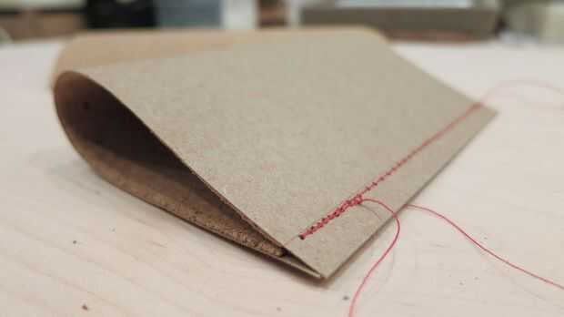Así que tal vez se pregunte en este momento 1) por qué vas a coser papel, y 2) por qué no estás cosiendo a través del corcho. El razonamiento aquí es simple. En mi propia experimentación, cosiendo el papel rindió un vínculo más efectivo que el pegamento, y puesto que el corcho está compuesto por un agregado tan denso, costura tiende a resultar en grietas y desgarros. Digo no pelees con el corcho. Además, la estética que llegar al final es bastante agradable. Costura de mano funciona bien aquí, pero una máquina de coser definitivamente acelerará las cosas. De cualquier manera, sólo asegúrese de usar una puntada ancha; después de todo es papel (orificios demasiado juntos = lágrima).