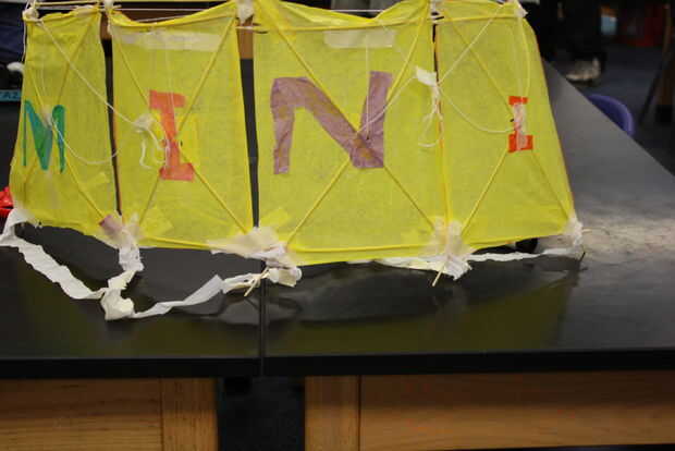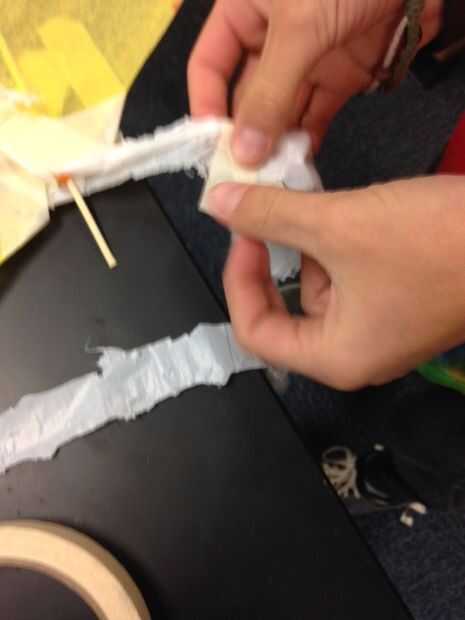 Usando una bolsa de basura bien rodado, corte los 4 extremos de 1 pulgada para hacer 4 colas para la cometa. Cada lado de la cola a una cometa individual de cinta. Todas las cometas deben tener una cola. Cinta de los lados de la cola para convertirla en una gran cola. Estamos listos.