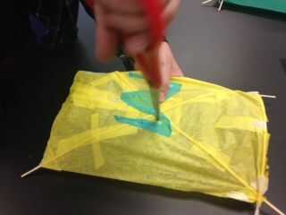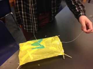 Obtener la cadena dos veces la altura de una sola cometa. A continuación, haga dos agujeros en el centro de la cometa (uno a cada lado de donde cruzan los pinchos) y uno en la parte superior. Después de eso, atar la cuerda a través de los orificios en el medio luego en la parte superior. Ahora tienes un triángulo rectángulo. Ahora, añadir un lazo en la parte superior. Si agrega una cadena al bucle, debe volar su cometa.