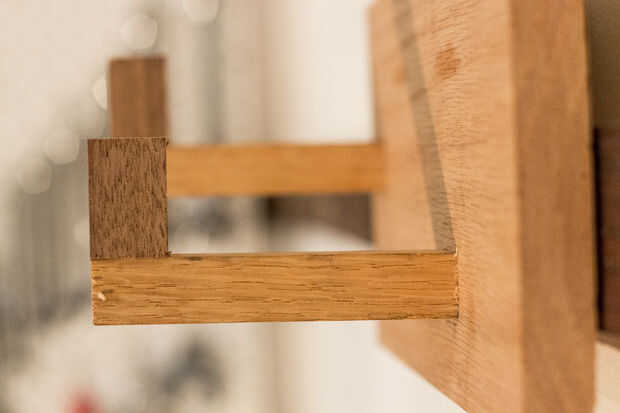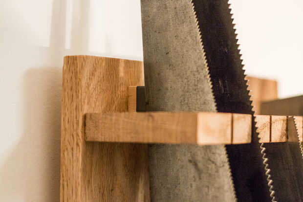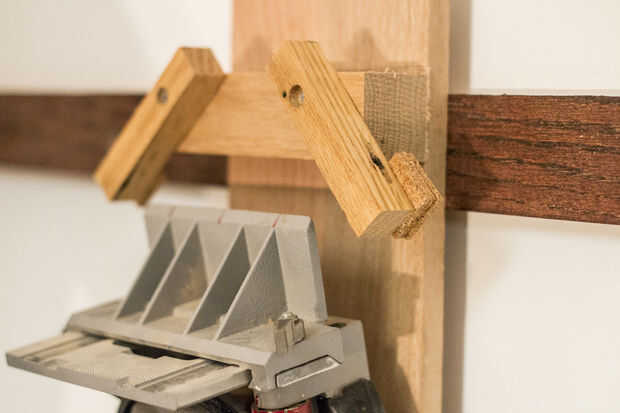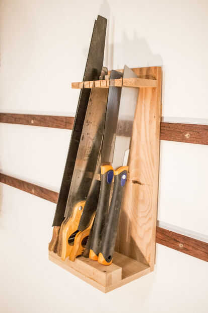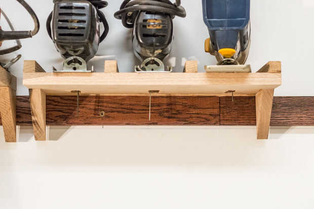 - Utilice bloques angulares pequeños para proporcionar adicional de apoyo. Las sierras de tres calar que ves en las fotos anteriores eran demasiado pesados para un estante no compatible, así que añadido a separadores simples 45 grados que lo mantienen estable.