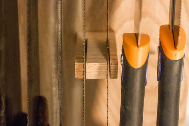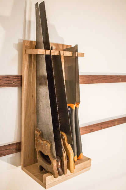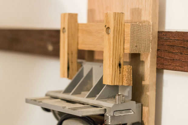 - Los sostenedores de herramienta ligera pero alto sólo pueden necesitar una cala - mi Serrucho tiene una cala justo debajo de su borde superior y se apoya contra la cuña inferior.