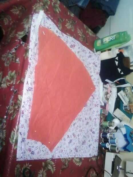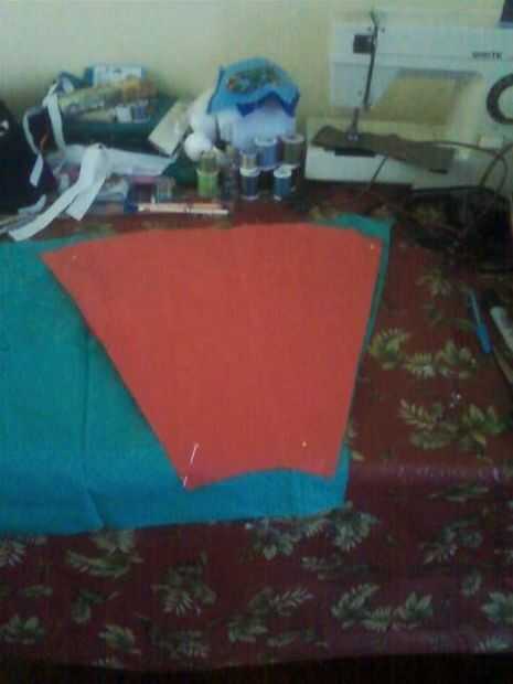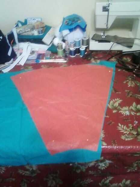 Pin el patrón sobre la tela (mi patrón podría parecer pequeña porque me olvidé de añadir 2 pulgadas para margen de costura)