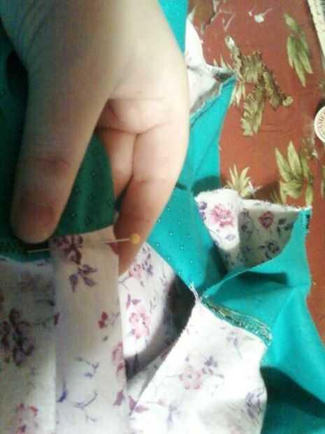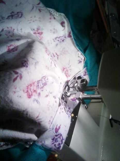 Coser una puntada recta a lo largo del borde inferior de la carcasa, desde uno de los lugares fijados doble, extremo en el otro borde.