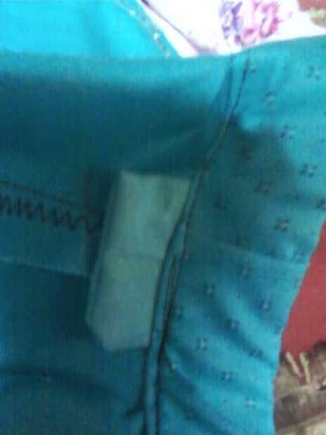 Una vez que el elástico está Asegúrese de que esté completamente dentro de la falda y asegúrese de que la cubierta esté plana contra el elástico.