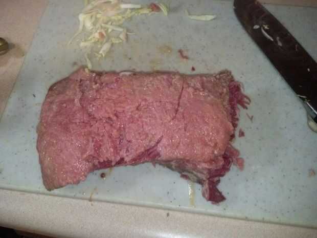 si tienes una olla a presión esta es una forma rápida de obtener una comida deliciosa carne sin la espera 3 + horas.Ingredientes:-losa 1 de carne, lavado.-12 granos de pimienta entera negra-3 muelles de perejil-1 hoja de laurel-1 cebolla-alrededor de