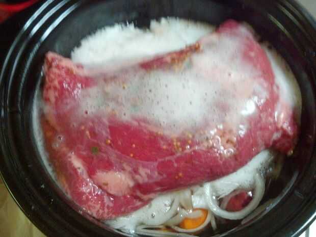 si tienes una olla a presión esta es una forma rápida de obtener una comida deliciosa carne sin la espera 3 + horas.Ingredientes:-losa 1 de carne, lavado.-12 granos de pimienta entera negra-3 muelles de perejil-1 hoja de laurel-1 cebolla-alrededor de