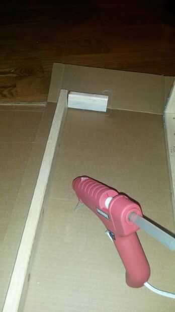Utilice una pistola de pegamento de alta temperatura para sujetar el cartón a la estructura de madera.