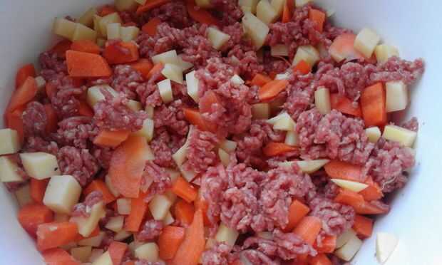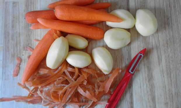 Para el relleno pelar y cortar las patatas en cuadritos. Hacer lo mismo con la zanahoria y la cebolla.
