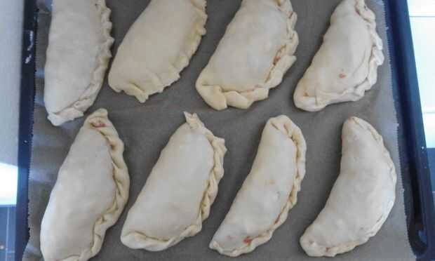 Esmalte pastys con un huevo batido con leche.