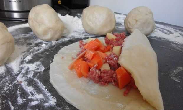 Cepillo el lime ligeramente con agua y doblar por la mitad. Apriete los bordes. Ahora comienzan en un lado y forma una encrespadura. Doblar el último bit debajo la pasty.