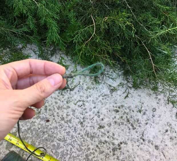 Fig 2: Medir tu guita a partir en el nudo. Hacer un lazo en el extremo y ATE en la longitud que usted necesita con otro nudo. Entonces corta la cuerda sobrante, liberando a la longitud con que de la bobina está trabajando.