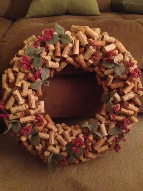 Para mi guirnalda compré una longitud de 7 pies de acebo y bayas 'azucaradas' - pensó que se vea como las uvas. Me corta que la longitud en 5 pedazos y luego pegados en su lugar alrededor de los corchos tratando de esconder el cable tanto como sea posible.