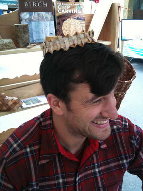 muchas de las heces de los participantes en la semana en el bosque (http://weekinthewoods.org/) hechos. Cada persona tejió un único asiento para el excremento de las tiras de corteza de abedul. Estas técnicas también podrían utilizarse para hacer o r