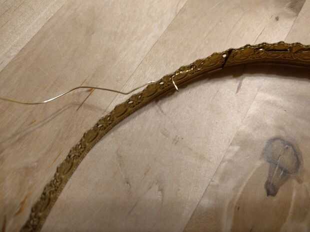 2. de lazo alrededor 1" a través de un orificio y gírelo para fijarlo en el interior de la corona. Se grano alrededor de la torcedura para cubrirlo.