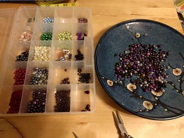 Salir sus adornos! Usted puede decidir si desea ir en un orden determinado o al azar del grano. Me gusta poner las cuentas que desea utilizar en un recipiente y escogerlos al azar.