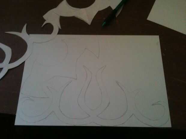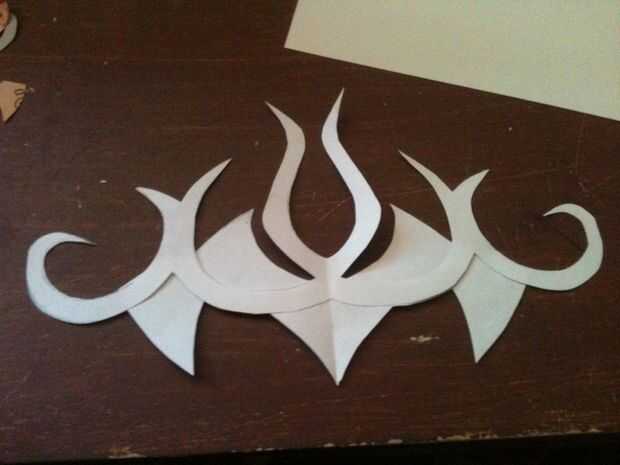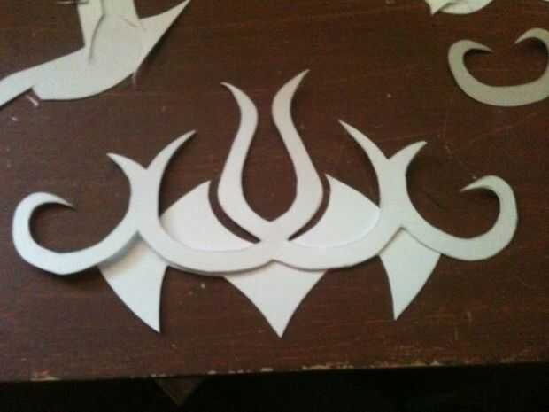 Comencé por planificación diseño de la corona en el papel, para asegurarse de que todo era simétrico y en forma juntos muy bien. Ya que estaba usando paneles de estireno más pequeño que encontré en una tienda de hobby, mi diseño fue realizado en varios trozos más pequeños que se ensamblan en un patrón repetitivo.