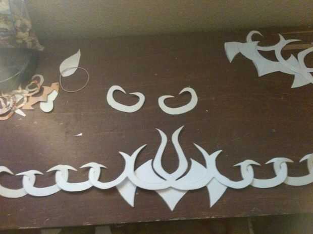 Cuando yo estaba contento con la forma de las cosas me trazó el diseño en las hojas de estireno y recorto. Cuando todo fue montado, parecía bastante decente. En este punto la corona se podría doblar en un anillo con la flexibilidad del plástico. Todavía parecía algo impar y plano, así que decidí tratar de formar un poco.